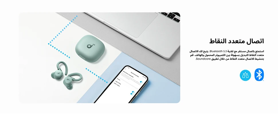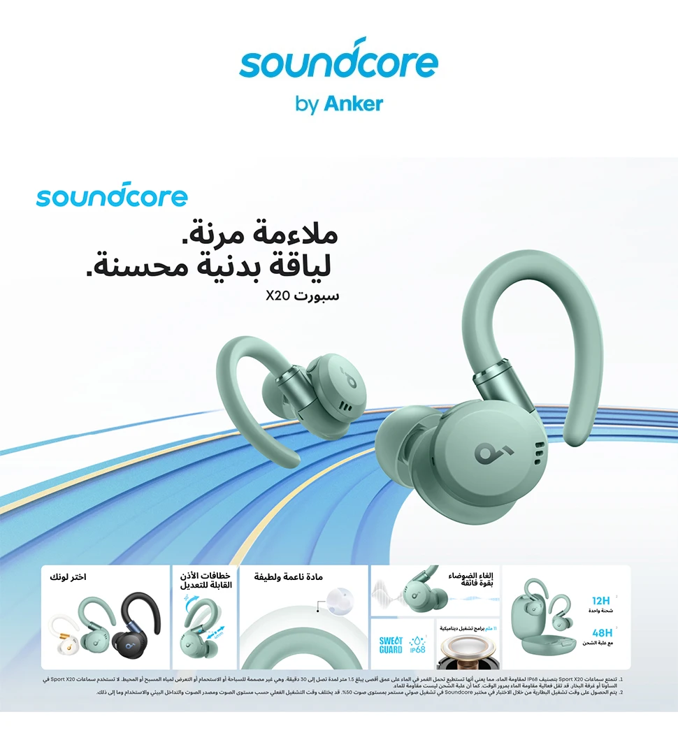 سماعات أذن Soundcore من Anker Sport X20 لاسلكية حقيقية للتمرين، خطافات أذن، سماعات بلوتوث لاسلكية تعمل بالبلوتوث